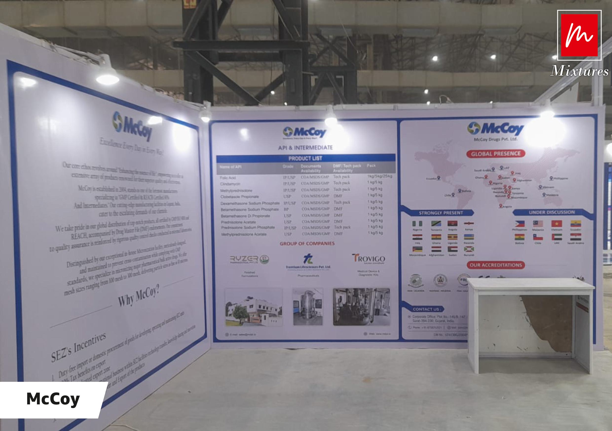 At Mixtures, we specialize in creating stunning shell scheme designs that enhance brand presence at exhibitions. We proudly partnered with McCoy, delivering a visually striking and functional space that showcased their products effectively.